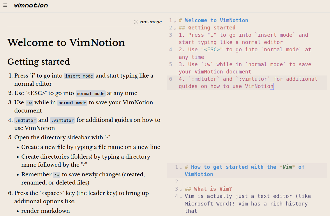 VimNotion is an ode to vim, bringing vim functionality to a Notion-like notes and document editor.